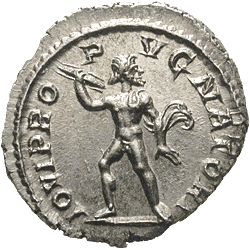 | Description: | Denarius (AR; 18-20mm; 3.04g; 1h) Rome, 231 AD. IMP ALEXAN-DER PIVS AVG Draped, cuirassed and laureate bust to right. Rev. IOVI PRO-P-VGNATORI Jupiter in fighting attitude left, with feet apart, head turned r., hurling thunderbolt. |