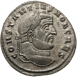 | Coinage: | CONSTANTIUS CHLORUS as Caesar 293-305 AD. Follis, Ticinum, 300-303 AD. |